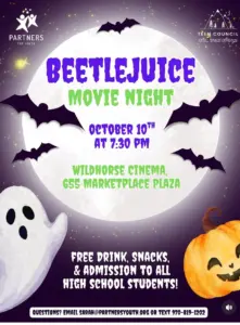 High school students are invited to a Beetlejuice Movie Night at Wildhorse Cinema tonight. Partners for Youth and Steamboat Springs Teen Council are hosting the free night of fun for high school kids. Questions? Email Sarah@PartnersYouth.org or text 970-819-1202.