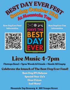 Join the fun for the “Best Day Ever” party on Oct. 12, at Mountain Tap. This is the celebration of Pete Van De Carr, and the launch of the Best Day Ever Fund, set up in memory of Pete. It is to help youth have their own best day ever. There will be live music throughout the evening with door prizes and more. It’s from 4-7 p.m. Sunday, Oct. 12.