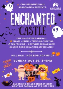 Join Colorado Mountain College’s Residence Hall Association (RHA) for a spooky good time at Hill Hall’s Enchanted Castle event. It’s from 3-5 p.m. Sunday, Oct. 26.