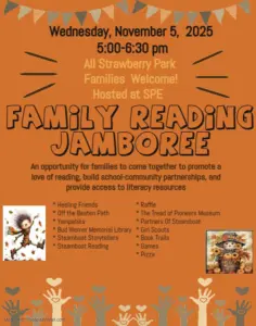 Strawberry Park Elementary hosts the Family Reading Jamboree from 5-6:30 p.m. tonight. All Strawberry Park families are invited to join the fun and promote a love of reading.