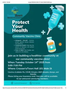 The Town of Yampa is hosting a Community Vaccine Clinic with South Routt Medical Center. Vaccines that are available are flu, COVID, shingles, and MMR (Measles, Mumps, and Rubella). Please bring an insurance card if you have one. The clinic is from 3-7 p.m. Tuesday, Oct. 4, at Crossan’s/Town Hall, 101 Main Street in Yampa.