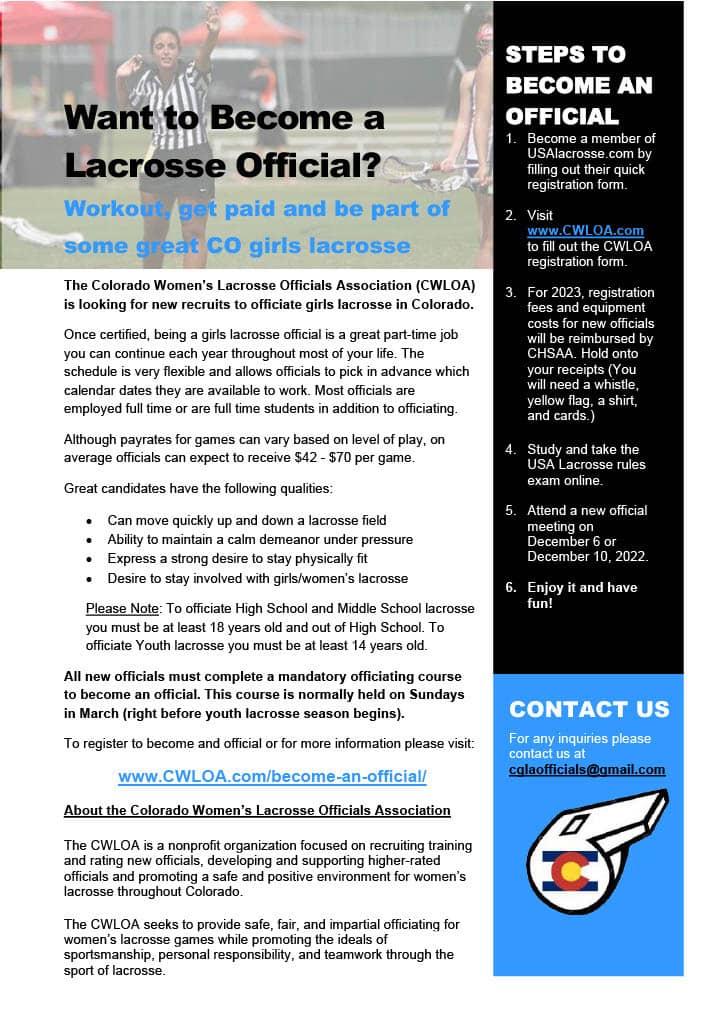 • Colorado Women’s Lacrosse Officials Association Registration Information