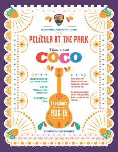 The Steamboat Springs Police Department (SSPD) hosts Movie in the Park at West Lincoln Park on Thursday, August 15, 2024. The movie is CoCo. The police department will be there serving up free burgers, hot dogs, and popcorn. Then the movie starts at 7:30 p.m. https://tinyurl.com/yn8ukyk4