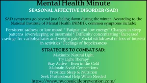 The Mental Health Minute for Routt and Moffat counties has been updated on our website. This week’s topic is about getting through the long cold winter, from Mindy Marriott, who is the Executive Director for REPS, which is Reaching Everyone Preventing Suicide.