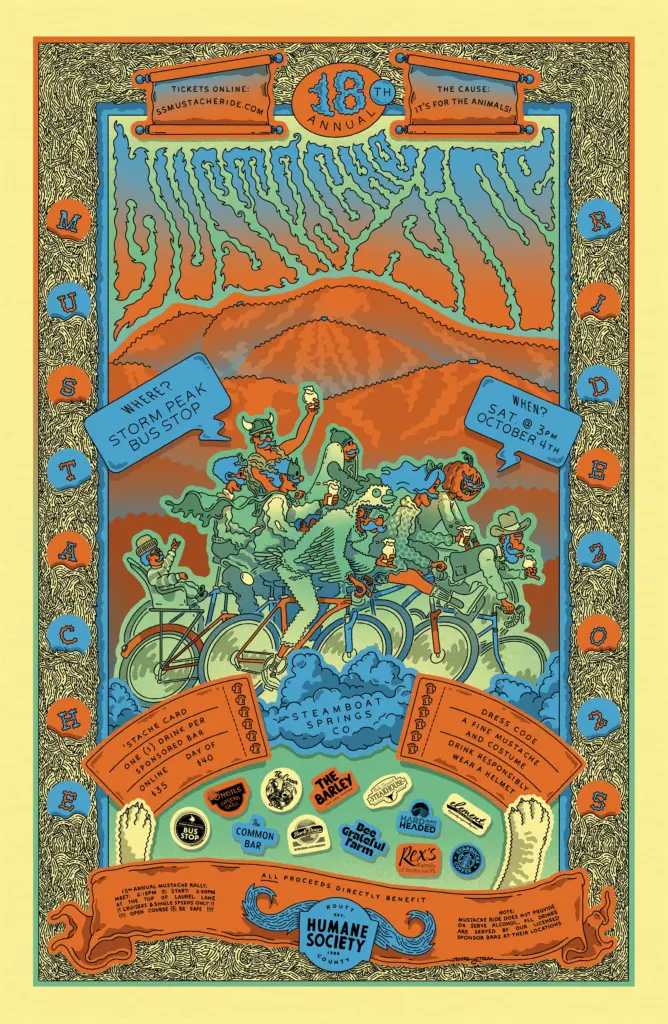 The 18th Annual Mustache Ride returns Saturday, Oct. 4, as a benefit for the Routt County Humane Society. Dress up and grab a mustache, real or fake, and join the ride, which is a celebration of Steamboat’s fun-loving spirit and dedication to animals in need. Meet at 2:15 p.m. at the top of Laurel Lane.