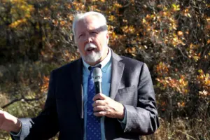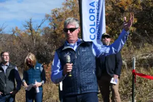 A new climate monitoring station has been installed on Woodchuck Hill, up above the campus of Colorado Mountain College in Steamboat Springs. It is part of a growing network of hydro-meteorological stations in the Yampa River Basin. There are seven now and there will eventually be 30 spanning the entire Yampa River Watershed. Mike Camblin was one of the speakers at the ribbon-cutting Monday. He is a Moffat County rancher from the Maybell area and also with the Colorado Water Conservation District.
