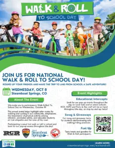 Today is Walk & Roll to School Day. It’s an annual event that shows the safer routes for walking and cycling in the community. The day is to promote safety and educate students on trail etiquette and the rules of the road. The day is brought to you by Steamboat Police and the City of Steamboat Springs, Routt County Riders, and the Steamboat Springs School District.