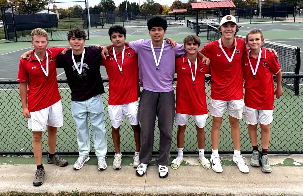 Coach Scicchitano writes, “This was our best showing in boys tennis in years, with three out of seven lines qualifying for state.”