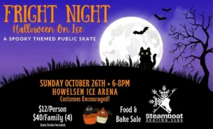 Get ready for a frightfully fun evening on the ice! 🎃 Join Steamboat Skating Club in their annual Fright Night from 6-8 p.m. Sunday, October. Bring your family and friends for spooky skating, festive fun, and plenty of Halloween spirit! $12 per person or $40 for a family of four.