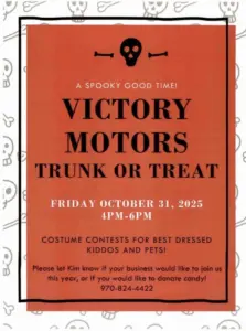 Victory Motors in Craig presents Trunk or Treat, from 4-6 p.m. Friday, Oct. 31. There’s also a costume contest for the best dressed kids and pets.