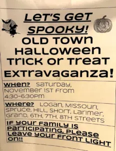 Old Town Steamboat Springs is inviting trick-or-treaters in the neighborhood, from 4:30-6:30 p.m. Saturday, Nov. 1. If your house is participating, leave the light on.