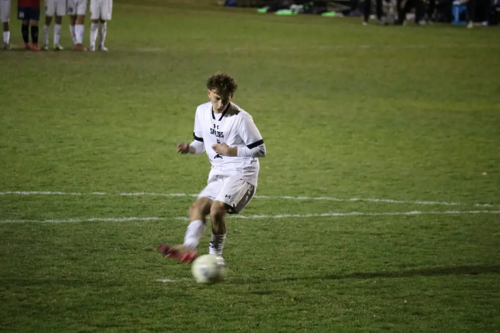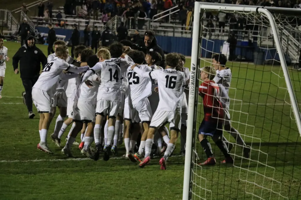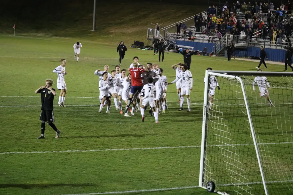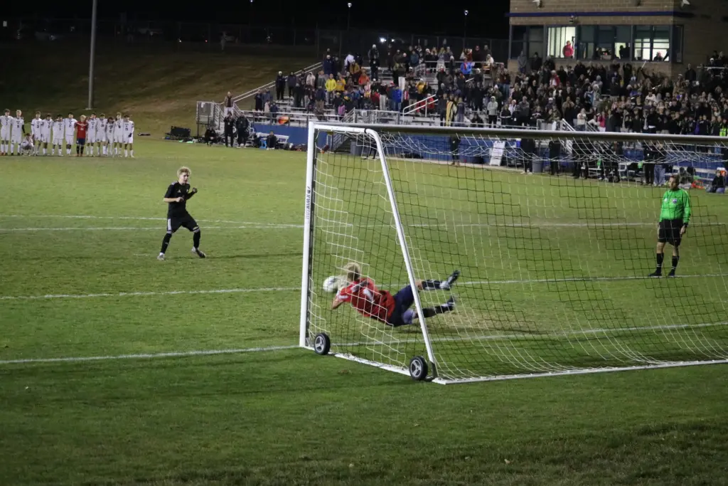 Here are a few pictures from the semi-final thriller over Jefferson Academy on Thursday night, courtesy Mike Morris. The game went to a Penalty Kick Shootout after two overtimes without a score. The first picture is of Kane Morris in the shootout. Then SSHS goalie Charlie Wiedel make the game winning save in the shoot, and the team celebration began.