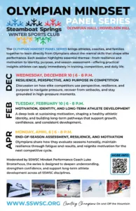 An Olympian Mindset Panel is tonight, hosted by Steamboat Springs Winter Sports Club. It’s at 6 p.m. in Olympian Hall at Howelsen Hill. Four of local Olympians will be on the panel tonight, to talk about mental skills that shape elite performance. They are: Alex Deibold (Snowboard Cross), Todd Lodwick (Nordic Combined), Haley Stewart (Biathlon), and Chris Puckett (Alpine). The event is free and all are invited. This is the first of three Olympian Mindset Panels.