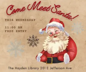 Santa Claus is stopping by the Hayden Library at 11 a.m. this Wednesday. The library is at 201 E. Jefferson Ave.