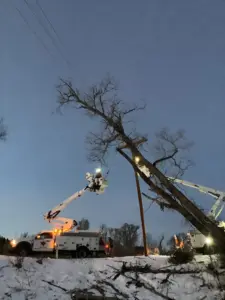 On Yahmonite Street, we are working on clearing trees from lines and will make repairs when we get those trees clears. We are estimating these members will be out until 2 pm.