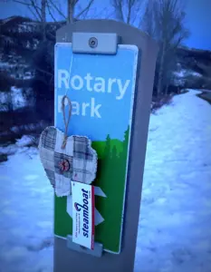 Elves hid 489 homemade cloth Heart Bombs throughout Steamboat Springs heading into the weekend. They were all over town. If you found one, you get to keep it. The Heart Bombs say, “This heart carries Mountain Air and Steamboat Care.” This is the third year that the anonymous Heart Bombers have struck.