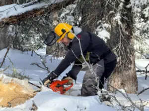 The recent winds have downed hundreds of trees along winter snow roads between Dry Lake, Buffalo Pass, Rabbit Ears Pass and the Summit Lake areas. Lane of Pain halfway to the towers on Emerald Mountain was also affected with trees across the trail. Crews gathered over the weekend to start clearing the downfall. Those groups include Routt County Search and Rescue, US Forest Service, Powder Cats, and Routt County Powder Riders.