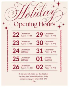 If your regular trash day is tomorrow in Steamboat Springs or Craig, don’t put out your trash can. There is no residential trash on Christmas Day. Pickup will be on Friday, instead, for Craig and Saturday for Steamboat Springs.