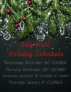In Craig, City Hall and City Offices are closed today and tomorrow for Christmas Day.