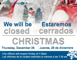 City offices in Steamboat Springs are open today and closed on Christmas Day.