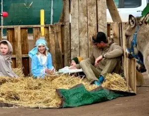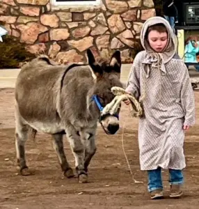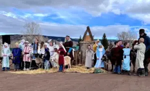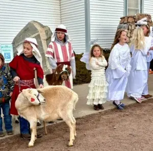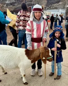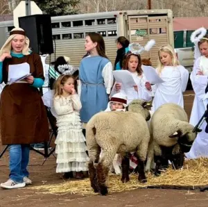 Twenty-two local students in South Routt County put on a Live Nativity Play in Yampa on Sunday, in front of Yampa Bible Church on Moffat Ave. The kids dressed as shepherds and had one dairy cow, two miniature donkeys, three alpacas, two goats, and two lambs. Those who coordinated it were Shiloh Whaley, Angie Horn, Kasey O’Halloran, and Shandra Herold with the Yampa Youth Bible Group. Pictures are on the Steamboat Radio Facebook page.