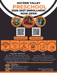 Hayden Valley Pre-School and Kindergarten enrollment is also now open through HaydenSchools.org