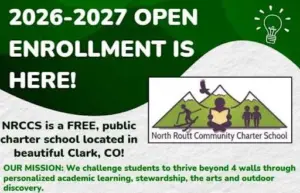 Enrollment is open for the upcoming school year for North Routt Community Charter School in Clark. Enroll at northrouttcharter.org. For questions or to schedule a tour please email office@northrouttcharter.org or call 970-871-6062.