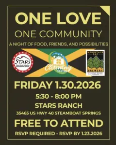 STARS Ranch is hosting a free event called, “One Love, One Community.” It’s a night of food, friends, prizes and possibilities. The event is from 5:30-8 p.m. at STARS Ranch, 35465 U.S. Highway 40 in Steamboat Springs. While the event is free, space is limited so please RSVP. More information is at SteamboatStars.com