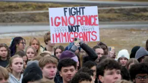 Students for and against ICE were at the rally. Teachers were directed to stay in their classrooms. There was also a strong police presence at the high school during the walkout.