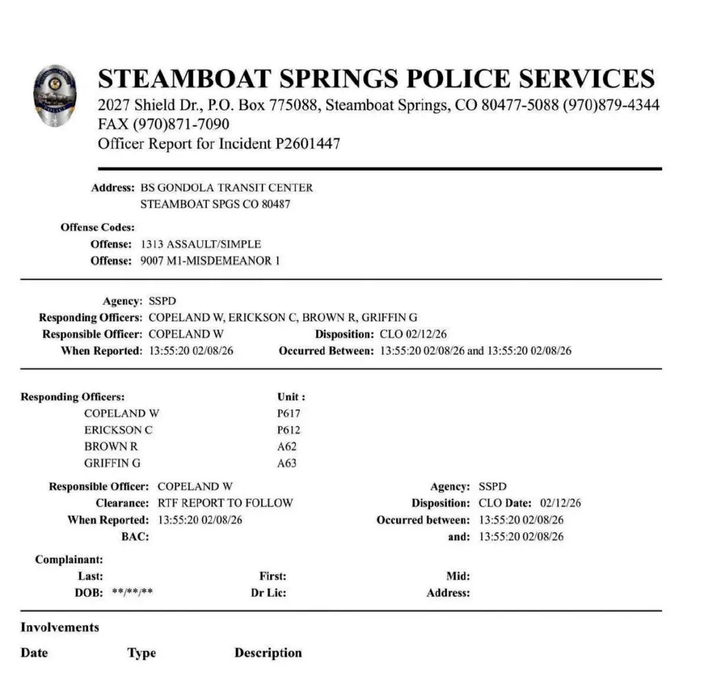 From Maren Franciosi, Communications Director at Steamboat Resort. “I can confirm there was an assault on one of our shuttle drivers over the weekend and a police report was filed with the Steamboat Springs Police Department. We encourage anyone who may have information related to this incident to contact the SSPD directly.”