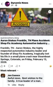 “Aaron Stokes was widely recognized as the founder of Shop Fix Academy, an organization dedicated to empowering independent auto repair shop owners. A self-made multi-millionaire with 25 years of entrepreneurial experience, Aaron’s influence extended significantly within the industry. He successfully owned and operated five auto repair shops and hosted the popular radio show “Fixin’ Cars with Aaron Stokes.”
