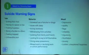 A presentation called, “Talk Saves Lives: An Introduction to Suicide Prevention,” was Wednesday night at the Steamboat Grand. It was presented by Steamboat Resort in partnership with REPS, which is Reaching Everyone Preventing Suicide. Talk Saves Lives is the American Foundation for Suicide Prevention’s flagship education program. It provides an overview of the scope of suicide as a public health issue, the research on warning signs and risk factors, and the strategies that can help prevent it. According to REPS, Colorado consistently ranks among the top states in the nation for suicide rates, and rural mountain communities like ours face an even higher risk.