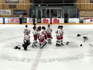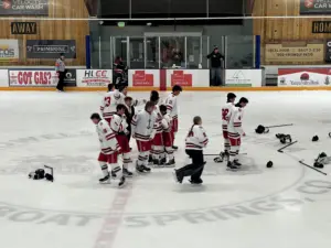 The Steamboat Sailors Hockey team advances to the CHSAA State High School Championships, with a 3-2 win in double overtime win last night, with the game-winning goal by Henry Hoffner.