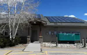 A tour of solar projects in the Yampa Valley was held Tuesday. In Moffat County, it included the solar field at Yampa Valley Electric, the Craig Water Treatment Plant, Moffat County High School and the Moffat County Courthouse. That’s where we joined Roy Tipton, the Project Specialist for the Moffat County Courthouse project.