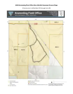 The Bureau of Land Management Field Office in Kremmling is closing public lands acquired through the Blue Valley Land Exchange, starting April 15 through June 30. It’s to protect sensitive wildlife, specifically elk during calving and bighorn sheep during lambing. This is for motorized and mechanized travel. Visitors may still access the area on foot. This includes about six miles of routes in the San Toy area and near Green Mountain Reservoir. Call the Kremmling Field Office for more information at 970-724-3000. Find details on all field office closures on the Kremmling Seasonal Closures webpage.