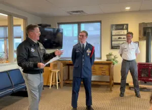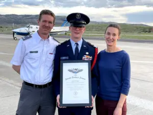 Cadet Captain Graham Smith has received the Amelia Earhart Award. Smith is a sophomore at SoRoCo High School and a member of the Steamboat Springs Composite Squadron of the Civil Air Patrol. The award was presented by major Daniel Kubitschek who is the Colorado Wing Vice Commander for the Civil Air Patrol. The award puts Smith in the top 5% of cadets nationwide.