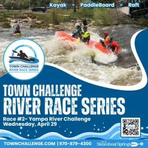 The Yampa River Challenge Obstacle Course is Race #2 of the Town Challenge River Race Series. It’s Wednesday, April 29. Kayak, paddle board, or raft from the 5th Street Bridge to the D-Hole. Register online at TownChallenge.com or starting at 4 p.m. at Workman Park. A mandatory racer safety briefing is at 5:45 and racing starts at 6 p.m. a post-race social is at West Lincoln Park.